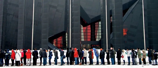 2010年1月10日早上,北京寒气袭人,东五环外的中国电影博物馆,人们排长队购票观看《阿凡达》。图/中新