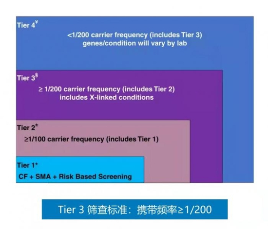 对于产品是否应该涵盖所有涉及的单基因隐性遗传病,贝瑞基因董事长、总经理高扬向21世纪经济报道记者指出,这是一个需要从实际出发逐步实现的问题。根据美国的ACMG《指南》,单基因隐性遗传病基于携带频率分为四个层级。第一阶梯(Tier1)的疾病是中国人群里最常见、危害最大的这几种病,最应该防治;第二阶梯(Tier2)和第三阶梯(Tier3)是在指定人群里携带率大于1/100的和1/200的,应该纳入普通人群的携带列表。因此,贝瑞基因的产品按照《指南》要求,覆盖了前三个层级。
