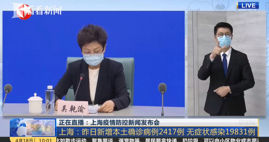 市卫健委通报,4月17日,本市新增2417例新冠肺炎本土确诊病例和19831例本土无症状感染者。2417例本土确诊病例中,1409例在闭环隔离管控中发现,155例在相关风险人群核酸筛查中发现,853例为无症状感染者转归确诊病例。19831例本土无症状感染者中,19425例在闭环隔离管控中发现,406例在相关风险人群核酸筛查中发现。