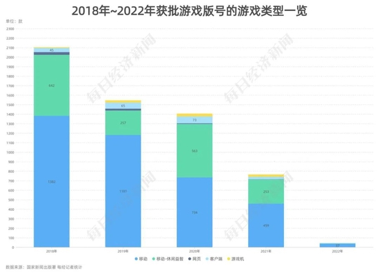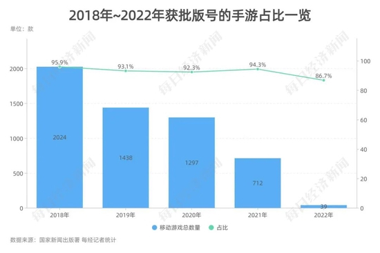 《每日经济新闻》记者以国家新闻出版署的游戏版号发放数据为基础,统计2018年~2022年近6000款获批的游戏版号,从背后的运营公司、类型、IP改编、进口游戏等多个维度深入挖掘,归纳出游戏产业5大变化趋势。