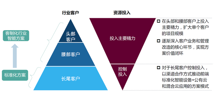 对于未来的战略,云从科技认为,基于客户群,云从定位会从方案层逐步下沉,从项目制到标准化服务,分为三步走:第一步,2G:以政府为主导,以新基建的方式,率先引领“三化”(信息化、数字化、智能化);第二步,2B:头部企业率先进行智能化改造,以头部客户为切入,沉淀通用产品向长尾客户下沉;第三步,2G+2B+2C:三浪来临,人机协同生态构建,C端用户亦成为客户。