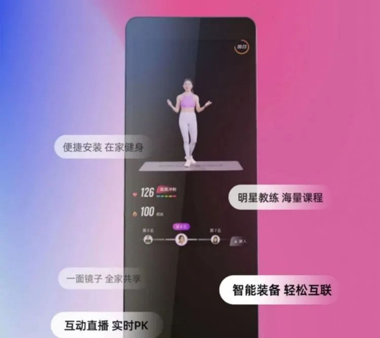 还有一种结合了AI技术的“健身魔镜”也逐步出现在消费者的视野中。这面“魔镜”在关机状态时是一面普通的全身镜,而在开机后,反光的电子屏幕里会出现一个虚拟教练,用户可以跟着教练完成各类运动课程,同时通过镜中的自己与教练的影像做动作对比。