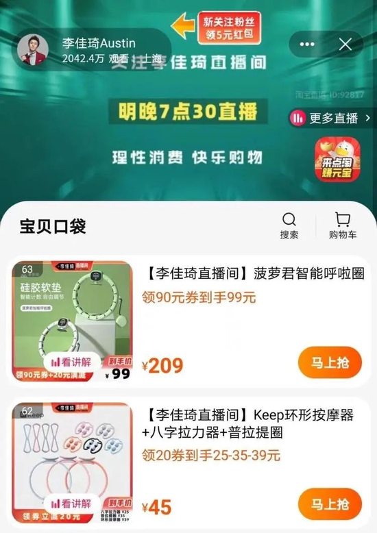 在李佳琦近期的直播带货商品中,也频繁出现了家用健身用品和健身服饰。