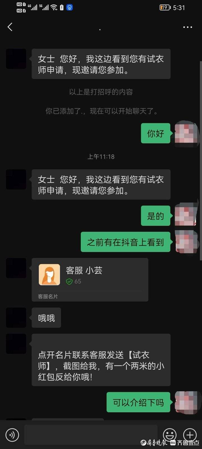“现在的骗子真是无孔不入,所以我想用自己的经历,提醒网友们不要轻易相信。”提及兼职试衣员一事,5月5日,赵美告诉记者,今年4月,她在家中照看孩子时,无意间在某短视频平台刷到了一则名为“试衣寄拍”的兼职招聘信息。