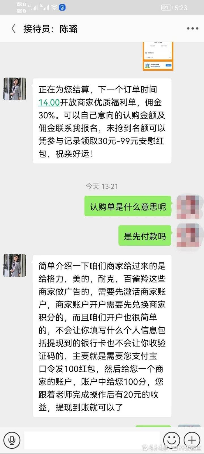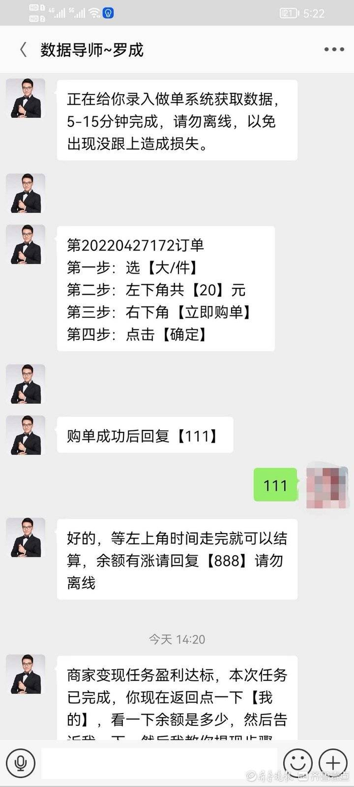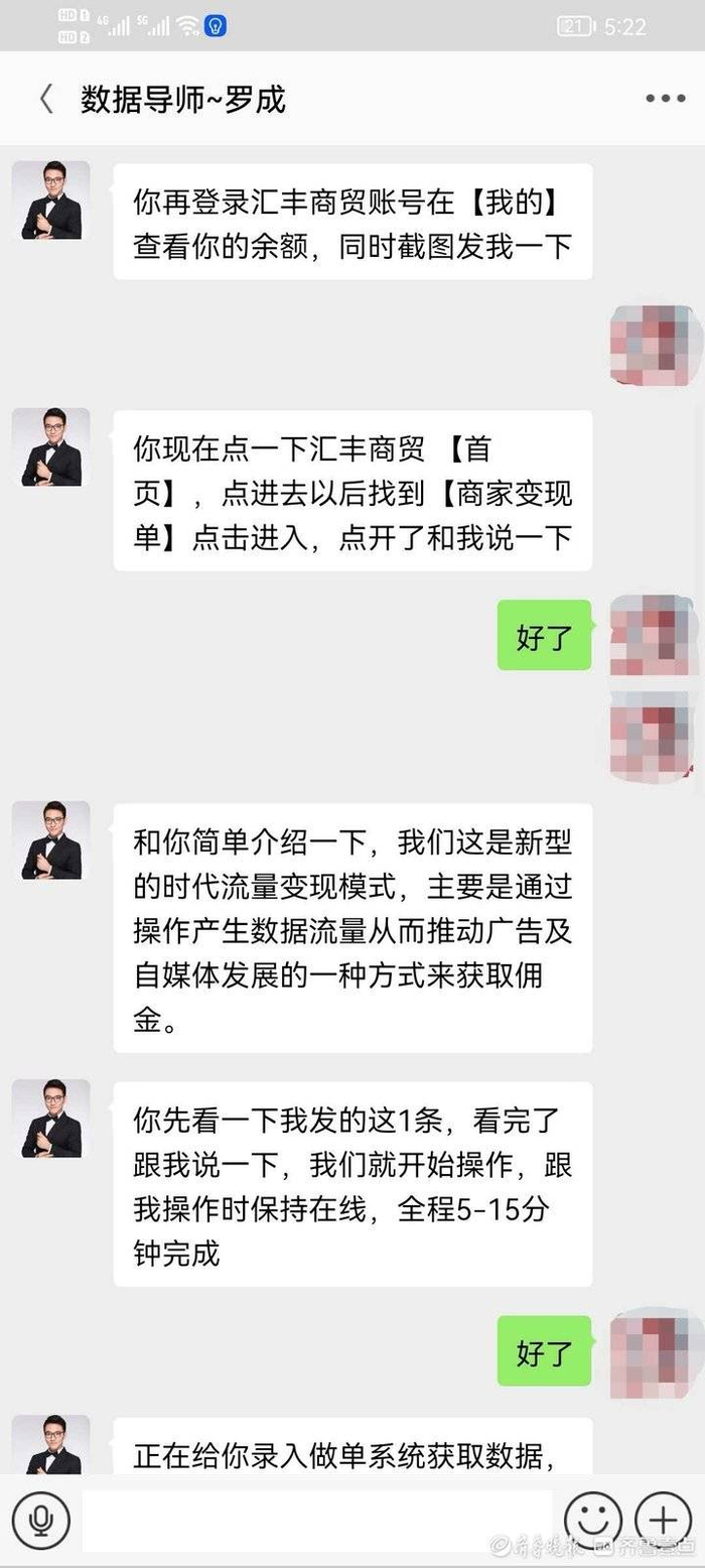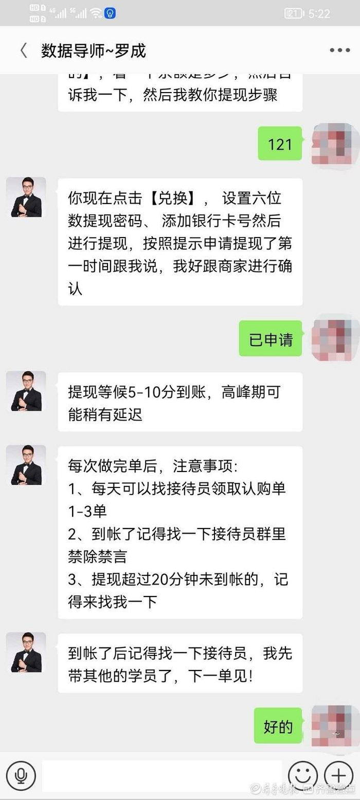 “15元我确实收到了。接下来,接待员就把我拉进了任务大厅和物流信息两个群中,并且接待员还说,会安排一个导师指导我完成任务。”赵美告诉记者,按照接待员的说法,操作者的任务就是完成商家的认购单子,每天可完成15单,完成任务后操作者就可获得报酬。