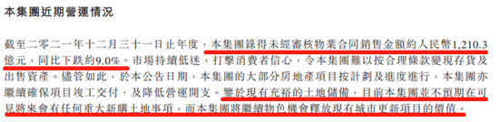 时间来到2021年,市场环境低靡,诸多开发商陆续出现问题,奥园同样出现债务方面违约风险。据奥园集团在2022年1月19日发布的一份内幕消息称:其在近期及未来两年将有多笔美元债到期,其集团将不会支付余下本金以及后续利息。同时,鉴于现有充裕的土地储备,奥园集团并不预期在未来会有任何重大新购土地事项,而是将继续确保项目竣工交付,并降低运营开支。