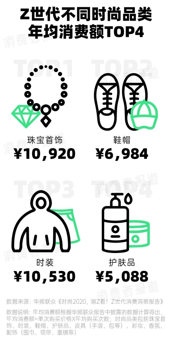 《中国Z世代贵重首饰消费白皮书》也显示,2020年Z世代为时尚消费贡献了三分之一的份额,在不同品类中,他们最舍得为珠宝首饰“氪金”。