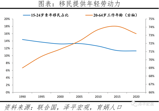 1)对于迁入国而言,移民是劳动力的重要补充。第一,移民可以提供年轻劳动力供给,缓解老龄化压力。根据联合国移民数据显示,2015-2020年高收入国家净移民占人口增加总数的63.7%,大量劳动力来自移民,并且移民年龄结构较年轻,2020年世界移民存量中,44岁以下占比超过60%。第二,高技术移民能够提高创新力。美国籍诺贝尔医学奖、物理学奖和化学奖获得者中,有25.8%为国际移民,并且2006-2012年间,美国新创建的工程技术公司中四分之一的主要创始人是移民。第三,移民同样在文化、政治方面有贡献。一方面移民和人口的流动促进现代食品体系发展、丰富国内饮食文化。另一方面在政治方面的贡献具体取决于各国的政策环境。根据联合国《世界移民报告2020》显示,世界上有五个国家赋予无国籍移民在国家选举中投票权,分别为智利、厄瓜多尔、马拉维、新西兰和乌拉圭,要求居住时间在1-15年不等,但是在海湾国家移民工人众多,却不能寻求工人权力。