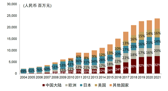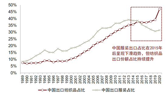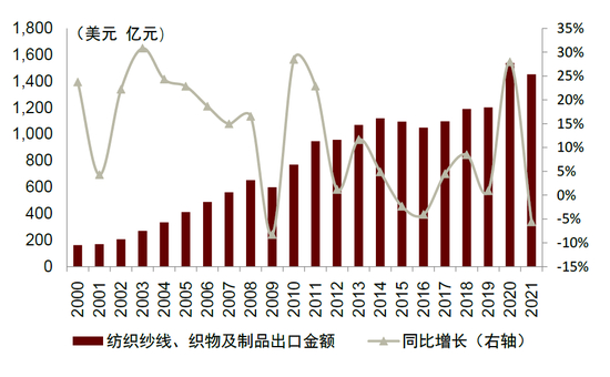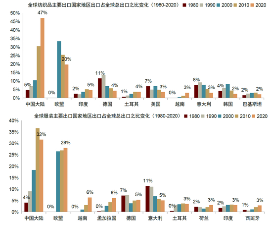 中国是全球最大的纺织品、服装出口地区;成衣制造环节逐渐向外转移