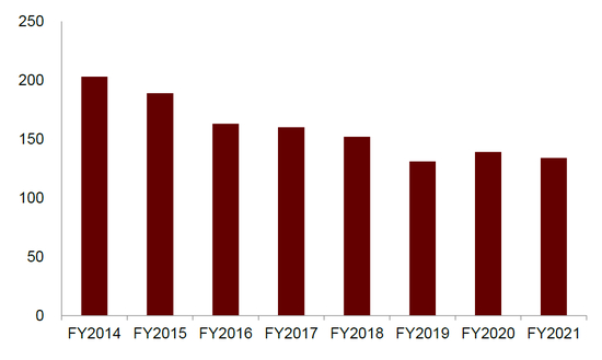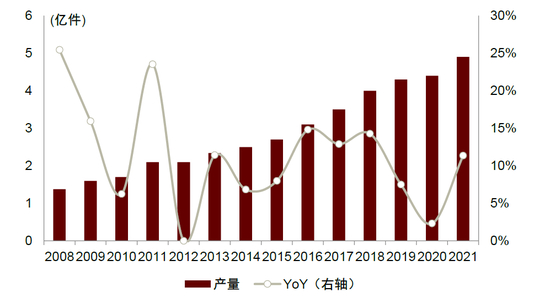 关注生产流程优化和小工具应用,驱动生产效率提升。申洲一直以来重视精益生产管理,聚焦生产设备的技术改造和生产流程的数字化、去技能化,截至2020年底已申请设备工艺改造创新及制衣模板类专利353项,通过生产小工具的引入降低对熟练工的需求,从而提升新工厂、新员工的招聘爬坡期,降低员工流动对生产的影响,推动生产效率提升。2007年至2021年,公司产量从1.1亿件提升至约4.9亿件,员工总数从3.5万人增长至约9.6万人,分别对应11%、7%的复合增长;人均生产件数CAGR 3.6%,反映生产效率的提升。