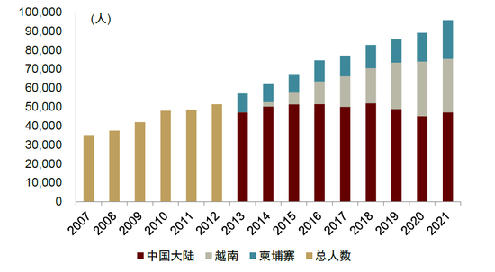 ►企业所得税率政策优惠,吸引外资设厂。中国大陆企业所得税率为25%,仅高新企业享受所得税率优惠15%。而越南政府对海外投资给与税率优惠及减免政策,对于项目投资额达6万亿越南盾,且自取得营收之年起最迟3年后总营收达10万亿越南盾/年或长期雇佣工人数达3,000人的项目,给与10%优惠税率及“四免九减半”税率减免;柬埔寨正常企业所得税率为20%,给予外资设厂优惠,自盈利开始可享受4年免税期。