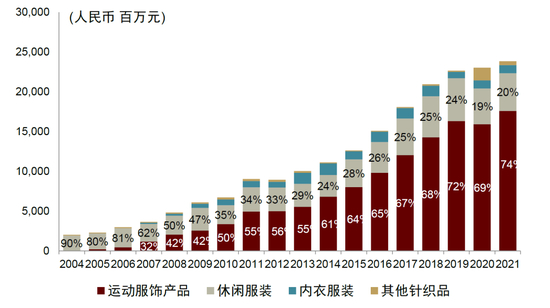 图表:2010年以来,运动服饰超越休闲服饰成为申洲国际第一大产品品类