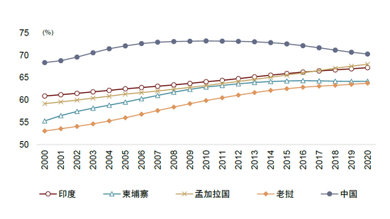 ►劳动力资源丰富且成本低于中国。南亚及东南亚地区国家劳动力资源丰富,2020年印度、柬埔寨、孟加拉国等国家15-64岁人口数量对比2010年有均有较大幅度的提升;而国内七普数据显示,2020年中国15-64岁人口比重为68.6%,较2010年占比下滑6ppt。越南15岁及以上人均工资约为285.2美元/月,柬埔寨15岁及以上人均工资约为269.6美元/月,而中国人均工资约为1243.8美元/月。即便工人生产效率相比中国存在差距,但员工成本仍具备较大优势;并且领先的纺织制衣企业正在通过自动化、去技能化降低对熟练工的需求,从而缩小生产效率差距。