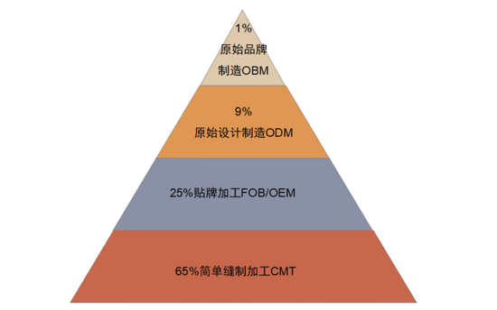 2015年以来,越南纺织品进口/服装出口比例稳定在50-60%,柬埔寨纺织品进口/服装出口比例稳定在60%上下,反映每件出口服装中50%以上的价值来自进口纺织品原材料。这也形成了越南、柬埔寨服装企业以代加工为主的运营模式,根据越南纺织服装协会数据,越南65%的服装企业以简单缝制加工(CMT)模式为主。