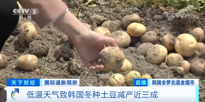 当前韩国市面上的土豆处于青黄不接的状态。此前收获的土豆库存逐渐见底,本该在近期大量上市的冬季土豆却因低温天气影响,收成不佳,整体产量骤减三成。在记者所在的这片土豆地,有农户表示,因产量下滑,加上很多土豆品相不好、表面有伤痕,无法达到出货标准,真正达到出货标准的冬季土豆仅为往年的六成左右。