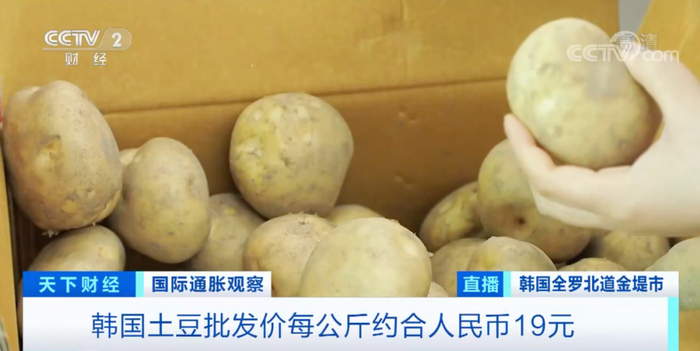 近期,韩国土豆批发价大幅上涨,最近一周,一箱20公斤的土豆批发价一度超过7万韩元,相当于每公斤批发价约合人民币19元,较上个月涨了四成,更是去年同期的近三倍。