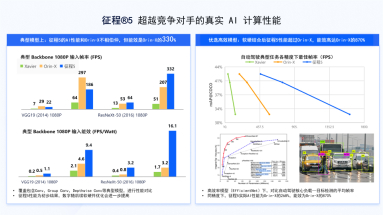 在典型Backbone1080P模型上,征程5的AI性能和Orin-X不相伯仲,但能效是Orin-X的330%;在优选高效模型下,软硬结合后征程5性能超过Orin-X,能效高达Orin-X的870%。