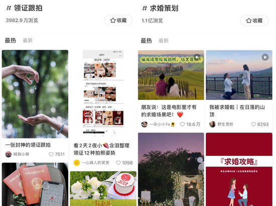 领证跟拍和求婚策划的讨论热度都很高