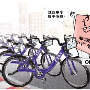 事实上,即使是没有违法内容的小广告,如“租房信息”“办理刻章”等,同样不可以随意张贴在共享单车上。
