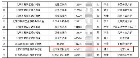 六里屯街道拟录取的城管队员中,有一名澳门大学的硕士;