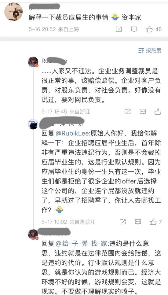 但也有人即兴为这个喊冤的人来了一场现实教育:“行业默认规则是你认为的游戏规则而已。经济大环境不好的时候,游戏规则会变,这就是现实。不要做不理解现实的喷子。”