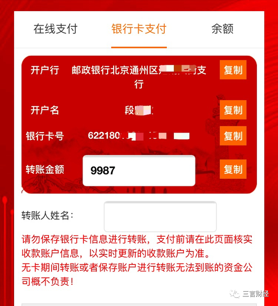 值得注意的是,当选好产品和收益周期,用银行卡付款时,对方收款账户是个人账户,而不是”国际航空航天科技有限公司“的账户。
