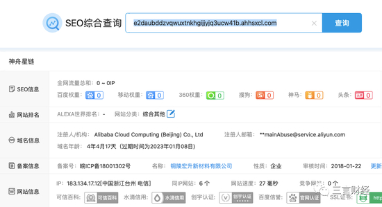 根据注册链接,查到”神舟星链“网站备案信息是铜陵宏升新材料有限公司,而不是“国际航空航天科技有限公司”。
