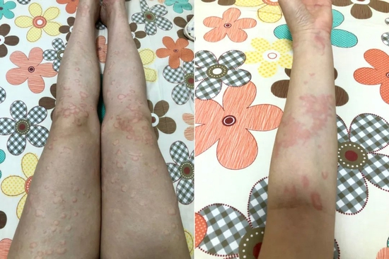 美婷发作最严重的一次,是去年3月。几天前朋友刚刚邀请她参加婚礼,本来要好好准备的她,一天早上突然发现手臂上开始起一圈一圈的红疙瘩,外围一圈是红色,中间鼓起大包。很快红疙瘩蔓延到脸上,她立马到医院挂了急诊。