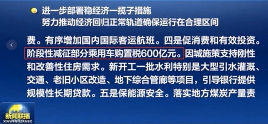 在即将实施的6方面33项措施中,与汽车产业息息相关的政策是:阶段性减征部分乘用车购置税600亿元,以及汽车央企发放的900亿元货车贷款,要银企联动延期半年还本付息。