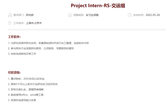 头部券商公开招聘要求苛刻