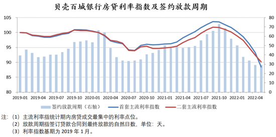 5月贝壳研究院监测的103个重点城市主流首套房贷利率为4.91%,二套利率为5.32%,分别较上月回落26个、13个基点,创2019年以来新低;本月平均放款周期为29天,与上月持平。但另一方面,4月住户贷款减少2170亿元,同比少增7453亿元,是继今年2月减少之后,年内居民贷款再度减少。[8]