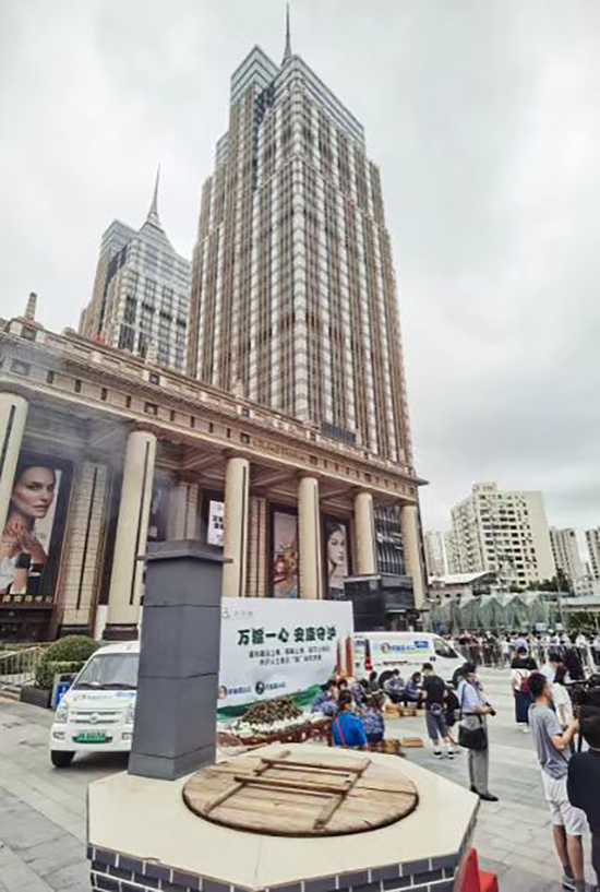 大灶煮粽让广场上飘香四溢。端午期间,环球港商场内已有400多家品牌商户对外营业,这吸引了不少出门的市民前来打卡购物。
