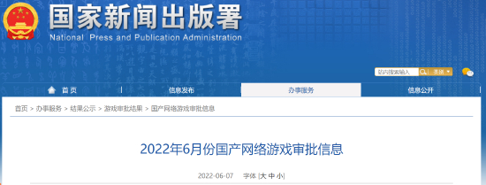 国家新闻出版署发布6月国产网络游戏审批信息,共60款游戏获批