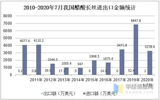 据海关总署公布的数据显示,2017年开始,我国醋酸纤维进口规模飞速增长,进口增速达到144.6%,近年来仍然维持高速上升趋势,由此看出,我国自主市场替代进口,仍然有很大空间。