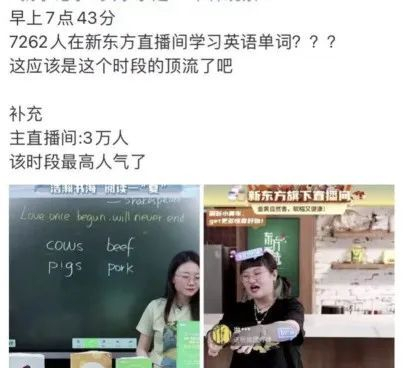新东方直播,是商品被拍完之后,主播们说:“别急,让我把这个知识点讲完。”
