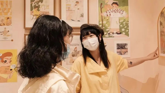 张晔他们没太改变老房子的痕迹,不拆的老吊灯,保留的旧壁炉,连斑驳的踢脚线都没有动。自忠路店开幕后,媒体和主播循着新展纷至沓来,突然的“爆红”让团队始料未及,张晔一开始很抵触成为“网红店”。但她很快意识到,正是因为这些关注,才让本就小众的插画进入更多人的视线,全国各地的游客、艺术生都来打卡。