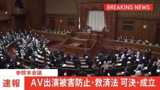 6月15日,日本众议院通过了一条名为《AV出演被害防止及救济法》的法案。该法案规定成人影片演员在影片发布起1年内,皆可以无条件解约、要求业者停止贩售或发行。