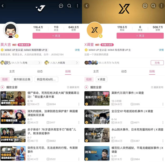 此外,在B站内讲灵异事件的UP主不在少数,例如“X调查、英大吉”等均是粉丝百万的同类型UP主,如果视频本身没有特别突出的内容,久而久之观众也会用脚投票。