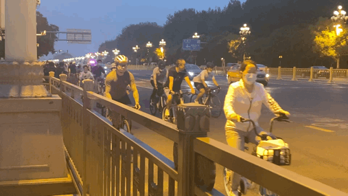 夜幕降临的长安街,骑行队伍堪比下饺子,绿灯一亮,百八十辆自行车瞬间冲锋。