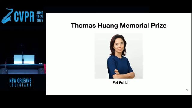 CVPR 2022黄煦涛纪念奖(Thomas Huang Memorial Award)由知名华人女科学家、斯坦福大学计算机科学系首任红杉教授李飞飞获得。