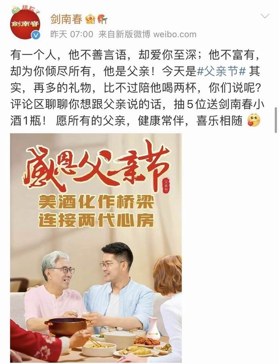 对于白酒企业来说,父亲节无疑是一个重要的营销节点。今年上半年,受疫情影响,饮酒场景减少,而刚刚过去的父亲节,不仅是下半年节日的开场,也是白酒主要消费者们的节日,酒企自然不会错过这个节点。