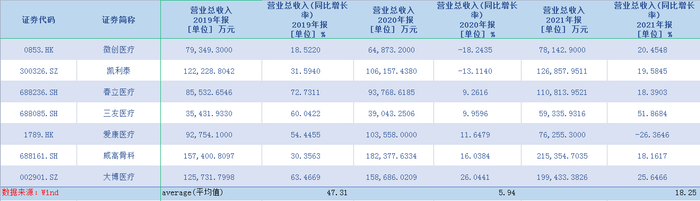 Wind数据显示,新冠疫情发生的2019年,7家公司收入均在亿元级别,疫情暴发后,收入同比增长率逐渐走低。2019年,7家公司的年收入增长率均为正数且算术平均数为46.88%,表现出高成长性;新冠疫情发生的2020年,有2家公司年收入增长率为负值,7家公司的平均年收入增长率为6.02%;过去一年,在疫情形势好转、医院逐渐恢复运营的背景下,7家公司的平均年收入增长率回升至18.25%,但较疫情前已不可同日而语。