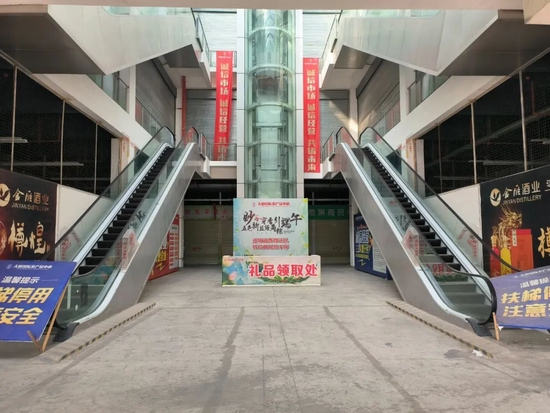 在李蓉的引荐下,记者约访到天府大市场南区天府国际农产品中心的一位业主赵明。赵明和记者来到天府国际农产品中心A2栋附近的一条巷道,他指着高处的某个卷帘门说,“我买的铺子就在那附近,现在电梯已经封住了,上不去。”