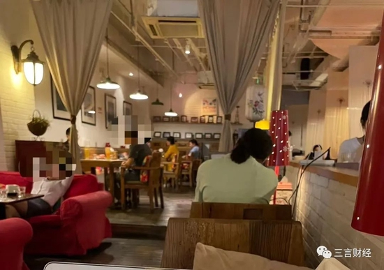 还有这里要热闹多了,几乎全部坐满,独坐的年轻女性居多,她们有的在吃东西,还有刷手机、电脑办公的,还有家长带了三四个孩子过来喝冷饮的。