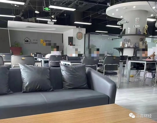 独坐的两位男士都面对电脑,全程没有说过一句话。