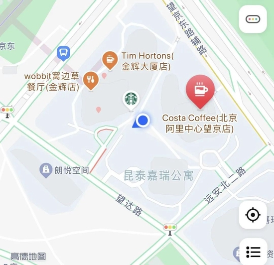 赶到望京核心地段的时候差不多快6点了,笔者选择了阿里中心附近的咖啡馆作为探访目标。