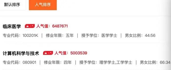 调查显示,新冠疫情暴发的2020年,医学专业大学排名搜索同比上涨164%。随着医学专业成为报考热门,录取分数线也随之上升。今年,学医热度依旧不减,据高考志愿填报服务平台“掌上高考”上的数据显示,专业人气排序中,临床医学的人气值高居榜首。