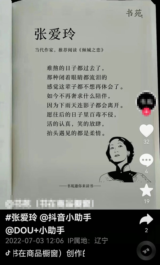 短视频编辑用虚构的张爱玲语录推销张爱玲书籍