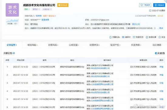 据相关APP显示,成都游术文化公司是2018年3月才成立的公司,公司注册资本50万,实际控股两人,一个叫张宇航,一个叫邱健,参保人数0人。
