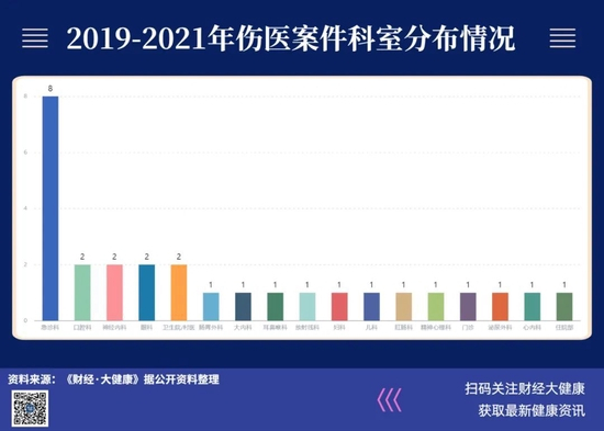 在《财经·大健康》搜索到的31起伤医案中,八起集中在急诊科,妇科、儿科各有一起。
